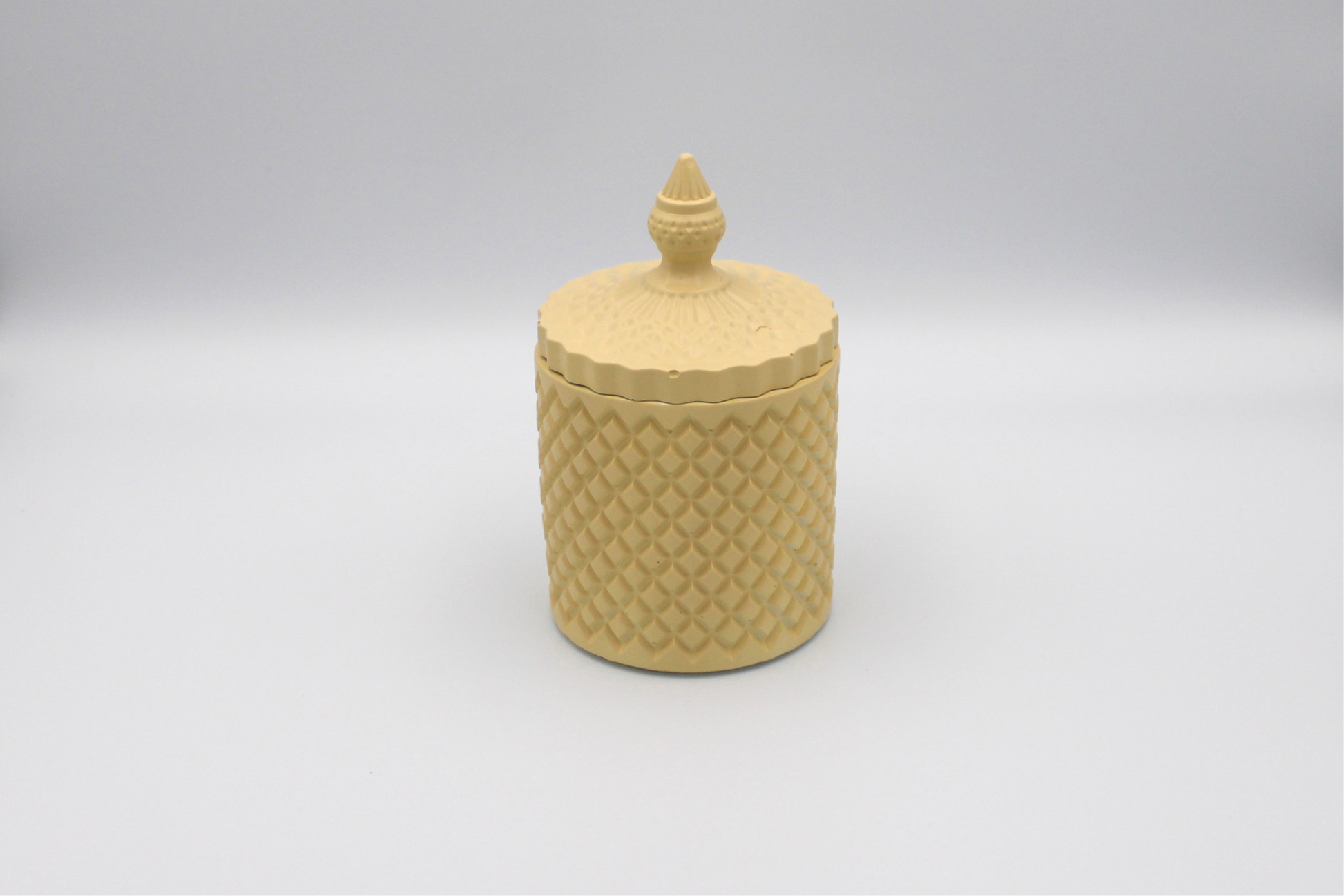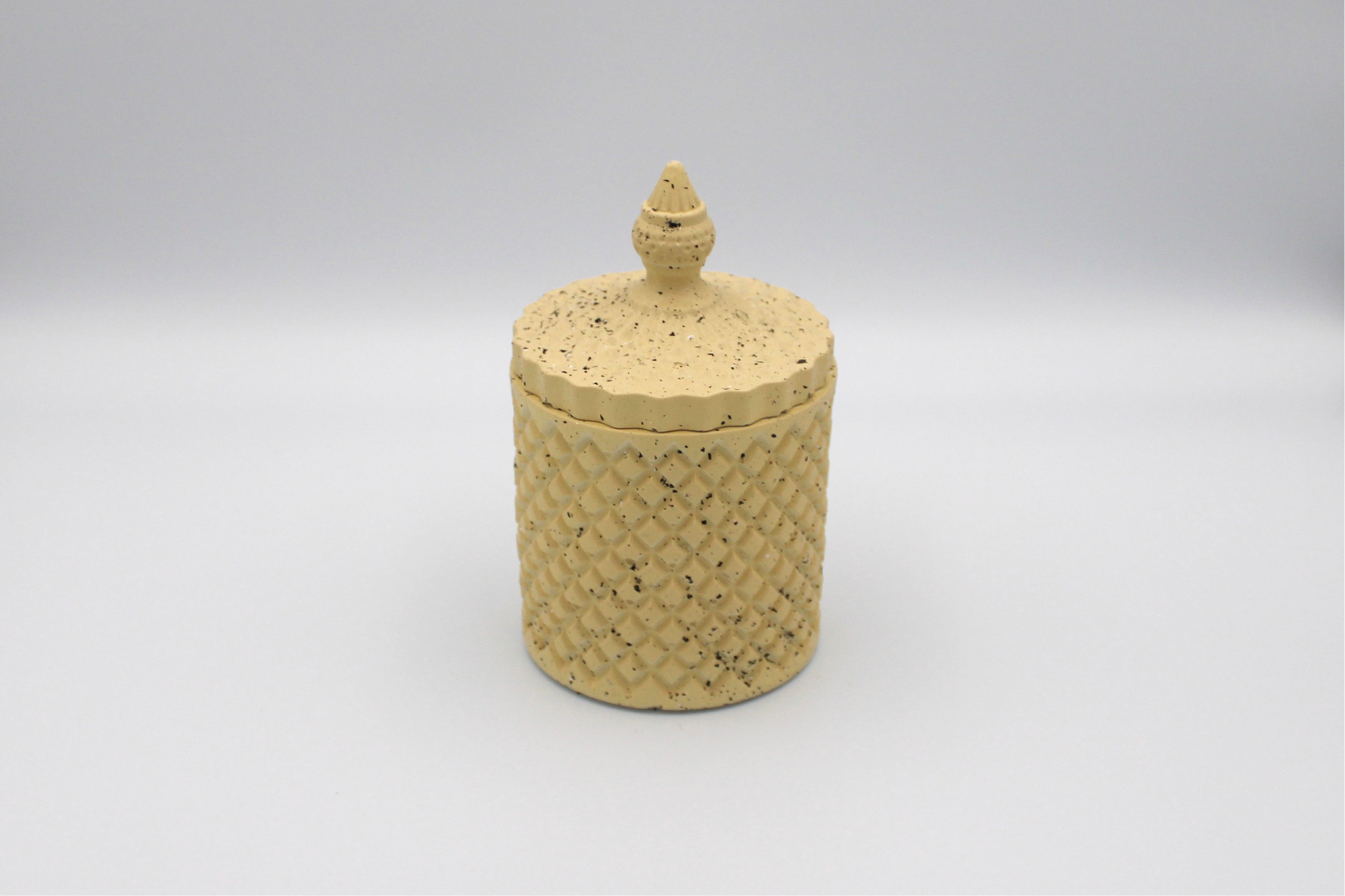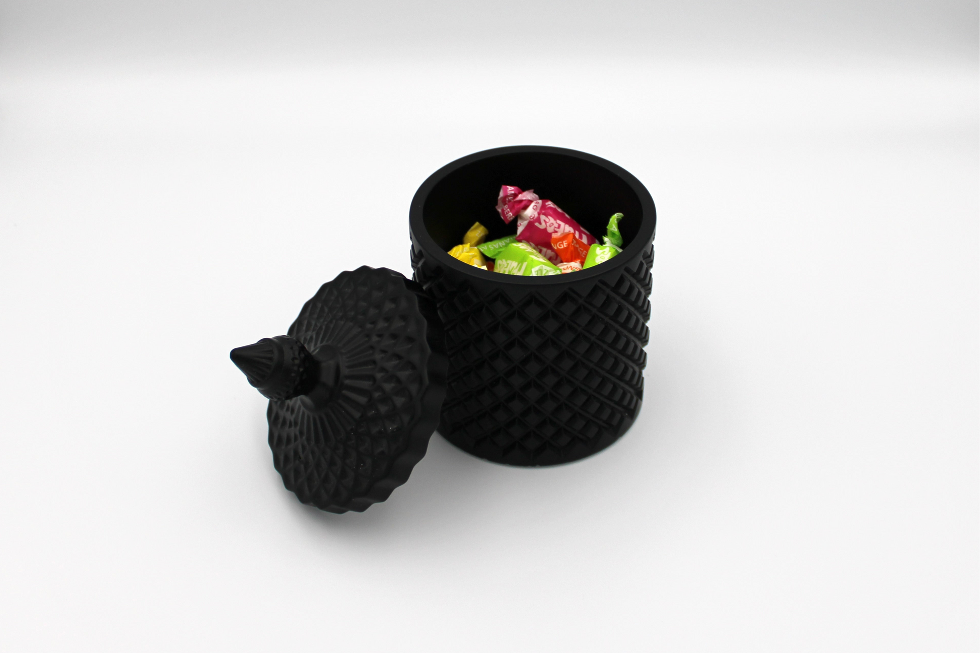Diese elegante Keramikdose besticht durch ihr handgefertigtes Design und ein feines, individuelles Muster. Der spitze Deckel verleiht ihr eine ausdrucksstarke Silhouette und macht sie zu einem besonderen Blickfang – ob als dekoratives Element oder zur stilvollen Aufbewahrung kleiner Schätze.