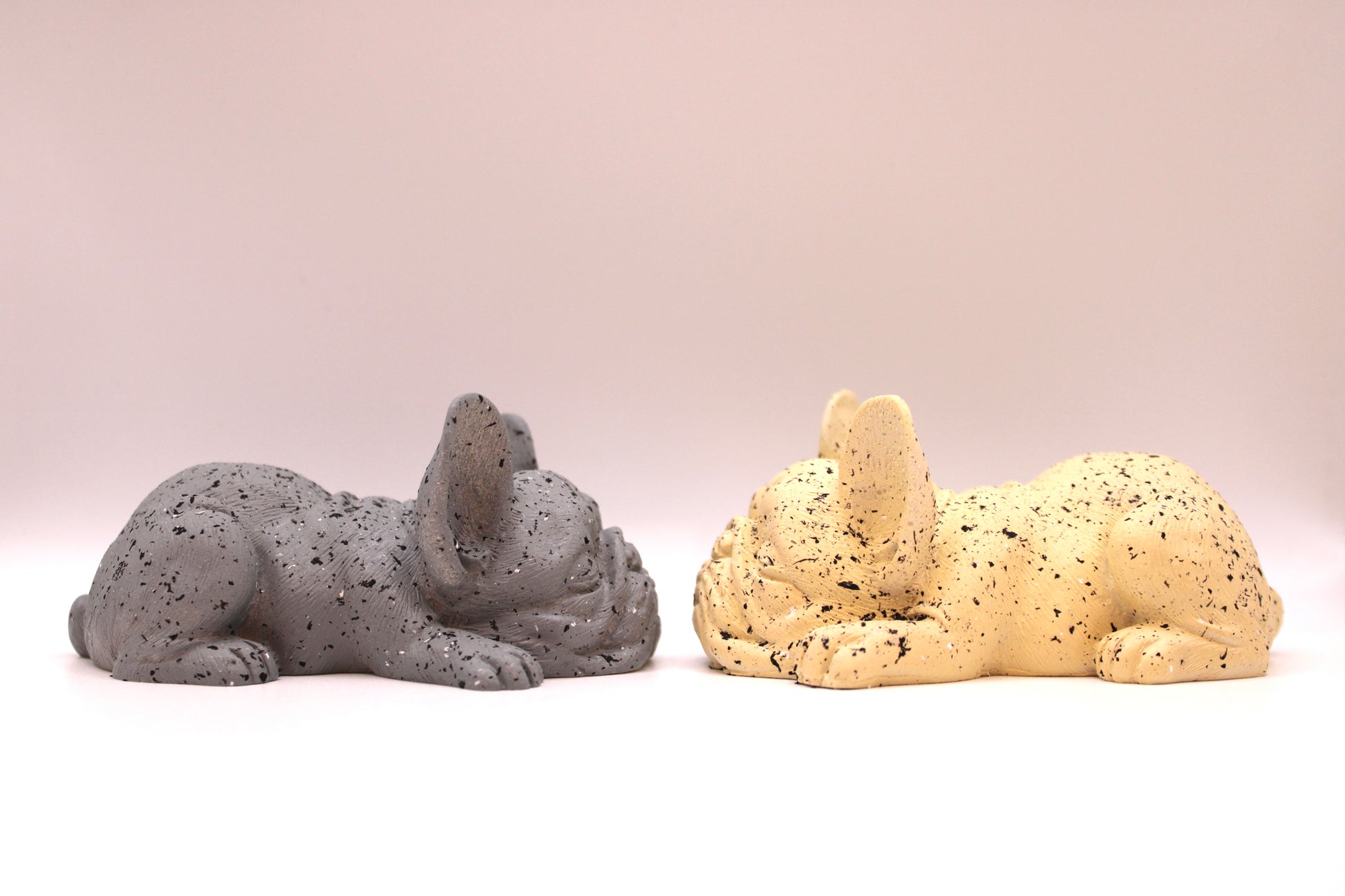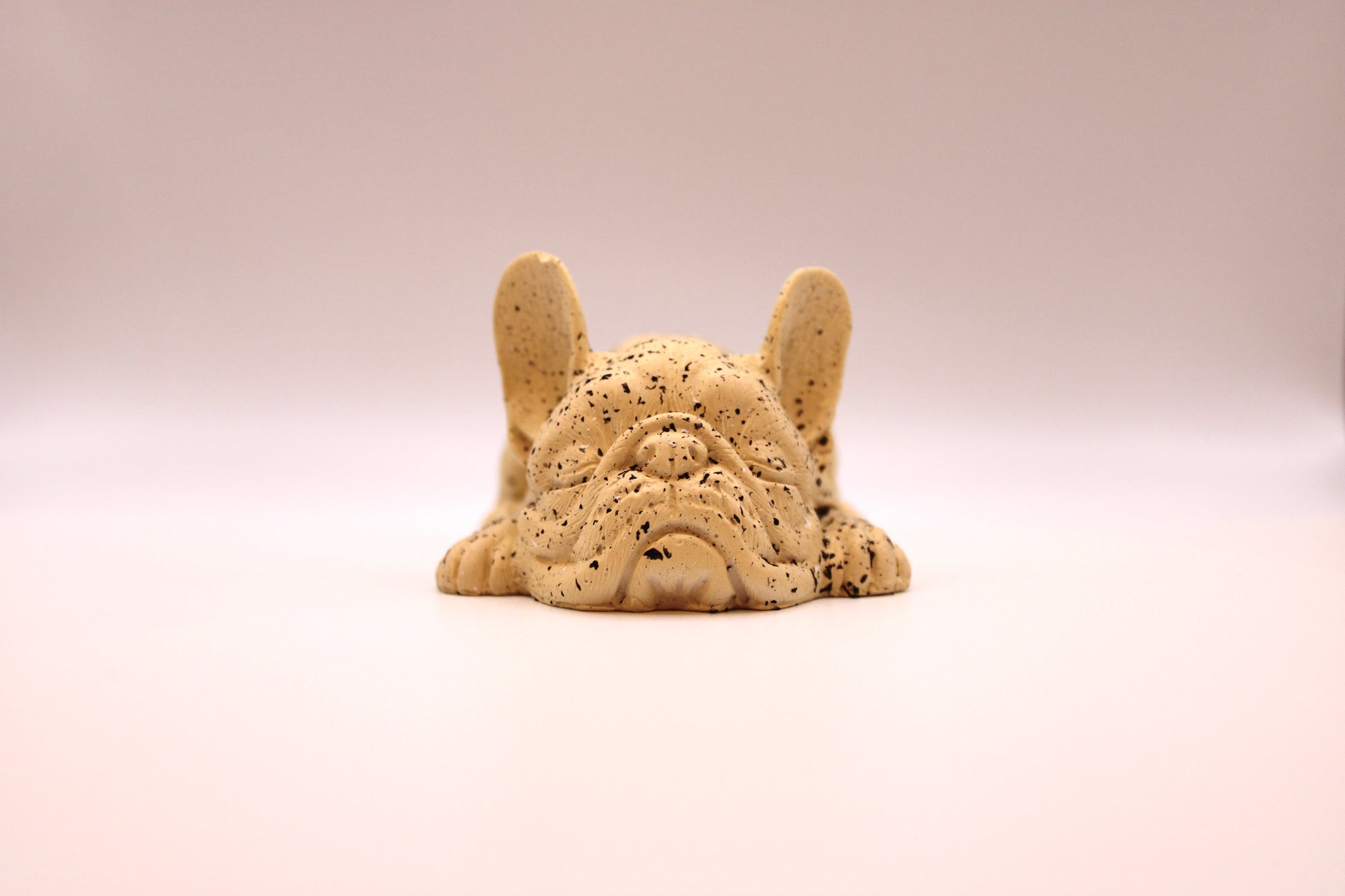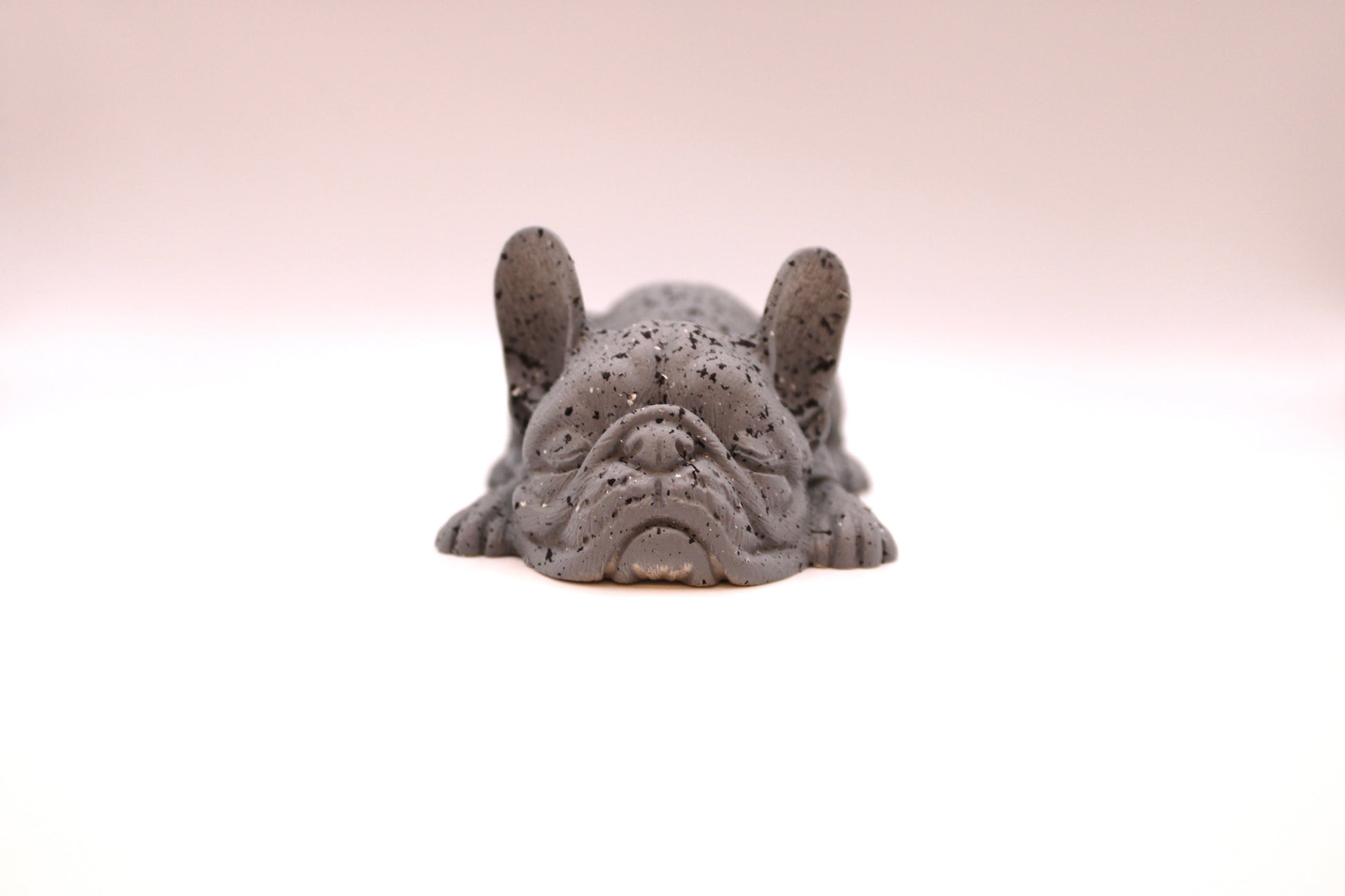 Diese stilvolle Dekofigur in Form einer liegenden Französischen Bulldogge ist ein charmantes Accessoire für jeden Wohnraum. Die detailreiche Verarbeitung und das matte, dunkle Finish verleihen ihr einen modernen und zeitlosen Look. Perfekt für Tierliebhaber, bringt die Figur einen Hauch von Eleganz und Gemütlichkeit in Ihr Zuhause. Ideal als Geschenk oder als Highlight für Regale, Tische oder Sideboards.